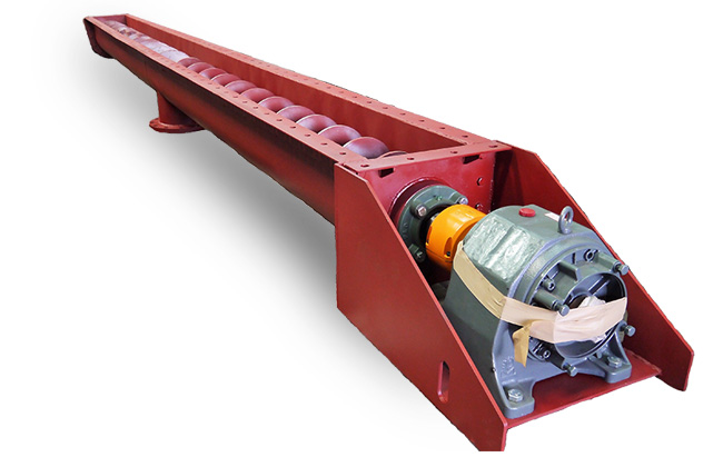 U型螺旋輸送機工作時,電機帶動旋轉的螺旋葉片將物料推移而進行輸送,螺旋輸送機旋轉軸上焊的螺旋葉片,葉片的面型根據輸送物料的不同有實體面型、帶式面型、葉片面型等型式。使物料不與螺旋輸送機葉片一起旋轉的力是物料自身重量和螺旋輸送機機殼對物料的摩擦阻力。
