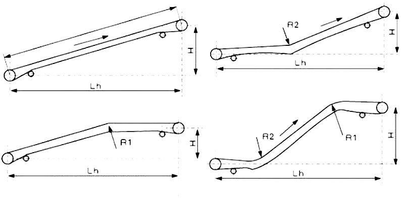 爬坡皮帶輸送機由上水平段、傾斜段和下水平段組成。