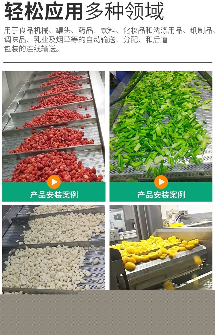 鏈板輸送機(jī)以標(biāo)準(zhǔn)鏈板為承載面,有電機(jī)傳動(dòng),用于飲料瓶、醫(yī)藥、食品、化妝品等行業(yè)的輸送,單線長(zhǎng)度一般不超過(guò)50米,那一臺(tái)鏈板輸送機(jī)多少錢(qián)一臺(tái)呢?下面將為您詳細(xì)介紹: